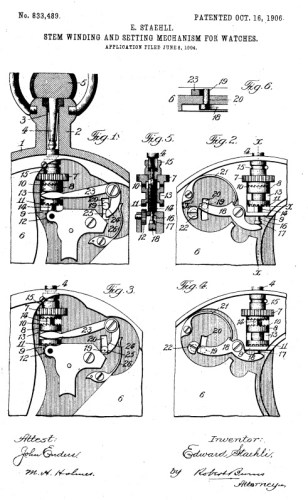 Joseph Bruns amerikanske affärs-partner Edward Staehli var också en uppfinnare i sin egen rätt och fick 1906 ett amerikanskt patent, US833489A, för en uppdrags- och visarställ-mekanism med hylsa.