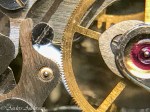 Urverket hade använts flitigt och bar tydliga spår av slitage. Som tur var gick det att köpa en del nya delar, jag hade även ett skrotverk där jag kunde ta några delar ifrån, annat fick justeras och poleras. Se bilderna med förklaringar.