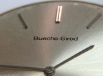 Eric lämnade in en relativt enkel klocka av ett ovanligt märke – Bueche-Girod. Den tunna vitguldsklockan visade sig ha ett intressant urverk, Frederic Piguet cal 21. Länge var detta världens tunnaste fabrikstillverkade urverk endast 1,75 mm tjockt/tunt. För att åstadkomma ett så tunt urverk krävs många speciella tekniska lösningar. Flera urmärken har använt detta verk i sina klockor, bland annat så skilda märken som Blancpain, Chopard, Certina, Omega och Patek Philippe. När jag i min ungdom utbildade mig hos Patek Philippe fick jag prova på många olika arbetsområden, bland annat fick jag sitta i produktionen och ställa in gången på detta mycket speciella verk, mer om detta längst ner på denna sida.