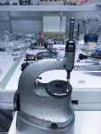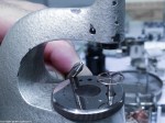 Förvånande nog hade axlarna för snäck- och centrumhjul stora slitage. En kronometer av hög kvalité med så här stora slitage? Det ville jag gärna undersöka närmare. Vid kontroll av axlarnas hårdhet visade det sig att den endast var ca 45-50 HRC. Blåstål brukar ha en hårdhet runt 55-60 HRC.