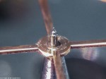 Nu kontrollerar jag att ytan där detantfjädern vilar mot skruven är fin. Det kan slitas in märke i skruven efter många års gång. Det är bara en liten yta av skruven som vilar mot fjädern, skruven har en något konisk insvarvning för att minska skruvens vilyta. Gånghjulstanden ska vila 1/3 in på vilstenen, detta justeras genom att vrida på vilskruven.