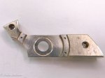 Hammarlyftare i fokus, till höger syns en av de tunna returfjädrarna för hammarlyftarna. På vänster sida syns underst returfjäder för hammaren, hammarens stift, dämpningsfjäder.