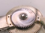 När jag tagit isär verket upptäckte jag två större problem. Det ena var en väldigt kort tapp på mellanhjulet det andra var en spräckt sten. En följd av den spräckta stenen var en skada på balanstappen.