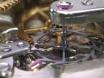 Jag såg snabbt att spiralens varv klibbade ihop. Genom att pressa ihop spiralvarven på flera olika ställen såg jag att den klibbade ihop. Kanske var det detta problemet som någon försökt fixa??? Om spiralvarven klibbar går klockan alldeles för fort.