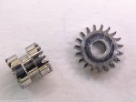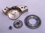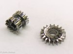 Fjäderhuskärnan till vänster, spärrhjulet i mitten.