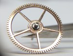 När jag öppnat båda boettlocken överraskades jag av ett vackert dekorerat urverk försett med en märklig konstruktion där en balansklove normalt brukar sitta.  Min första tanke var – en tourbillon – men jag upptäckte snart att den hjulliknande konstruktionen var fastskruvad i verkbottnen.  Jag tänkte förklara lite mer ingående några av de mer ovanliga finesser detta urverk har.