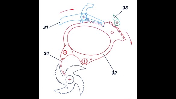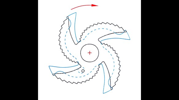 Här jag bockat slagarmen lite så att den verkar på återstoden av de slitna tandtopparna.