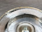 När jag skulle ta bort låsbrickan för centrumaxeln noterade jag – redan när jag gjorde kostnadsförslaget – att brickan inte var helt nere i sitt bottenläge. Jag antog att det var så här den skulle sitta eftersom brickan var extremt hårt fastslagen på axeln.