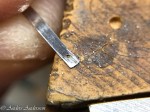För att underlätta för framtida urmakare filade jag in två små spår i brickan så att det skulle vara möjligt att få tag om den med ett par lyftare.