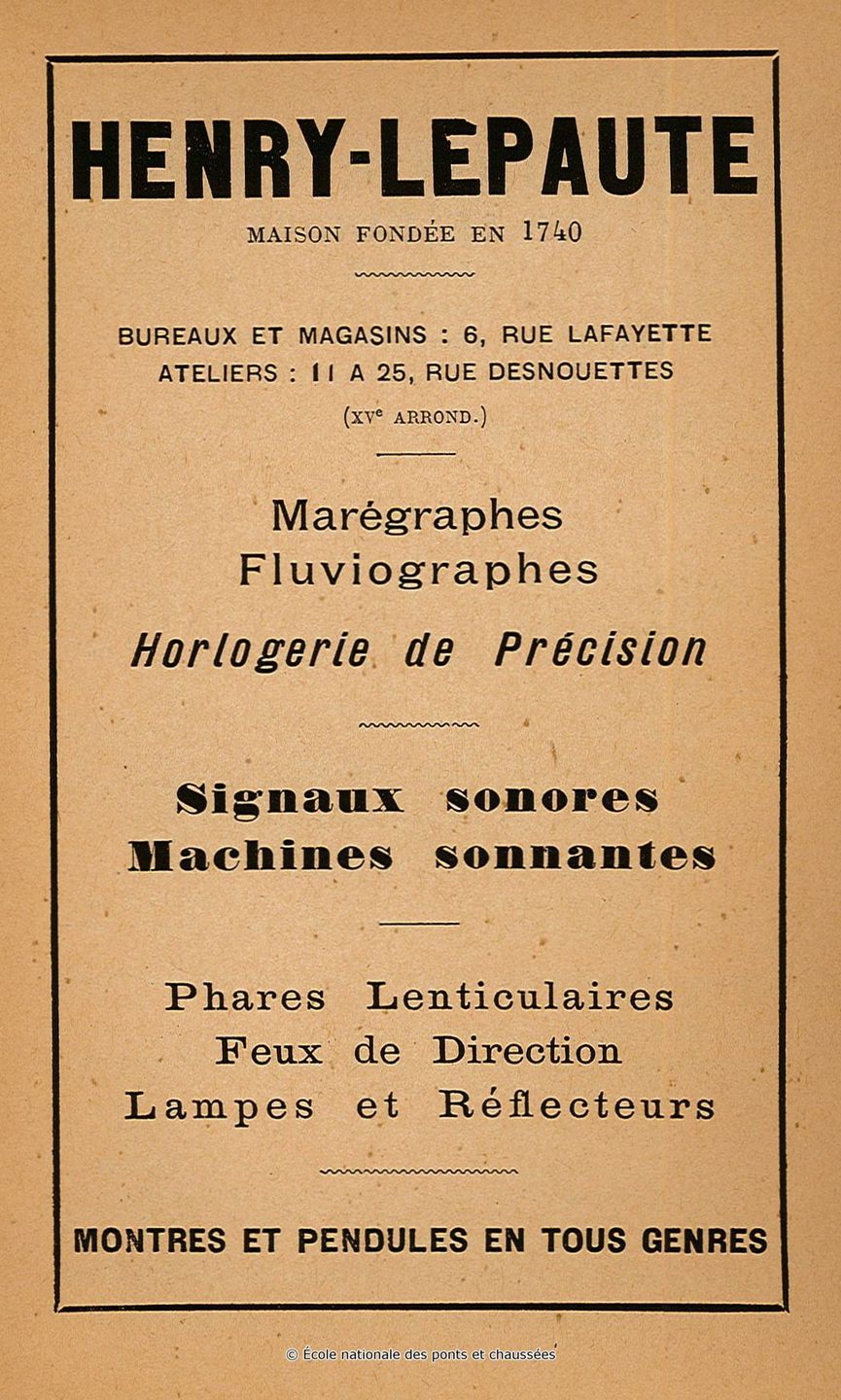 1838 startades den första urfabriken för tillverkning av tornursverk och verk till fyrar. 1854 började även produktion av fyrlinser. Efter Augustins död 1885 drevs företaget vidare av sönerna Léon och Paul Henry-Lepaute. 1965 tillverkades den sista linsen vid Henry-Lepautes fabrik, då hade mer 1300 fyrar utrustats med Henry-Lepautes fyrljus.