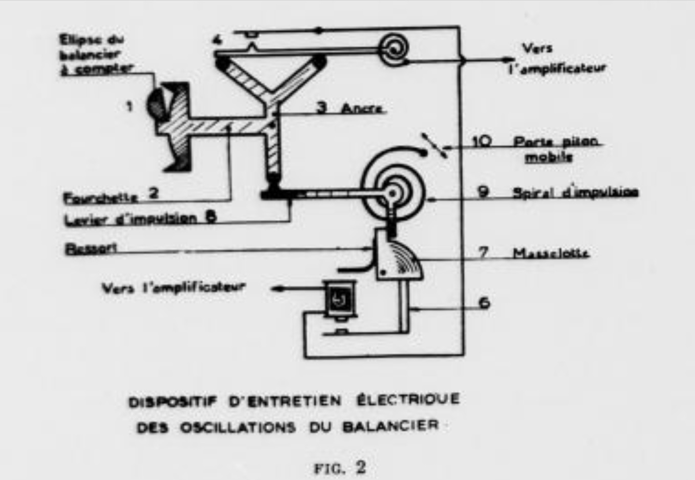 Då är det en vals som roterar med exakt hastighet, på valsen sitter en förhöjning som vid varje varje varv dyker upp på samma ställe. Klockans tick förstärks och omvandlas i apparaten till en mekanisk rörelse, om klockan går rätt hamnar varje prick i en rät linje, går klockan fel kommer linjen att luta.